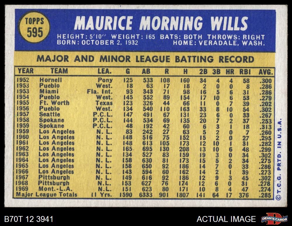 1970 Topps #595 Maury Wills 7 - NM