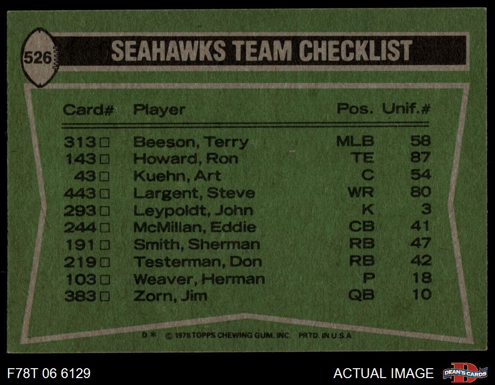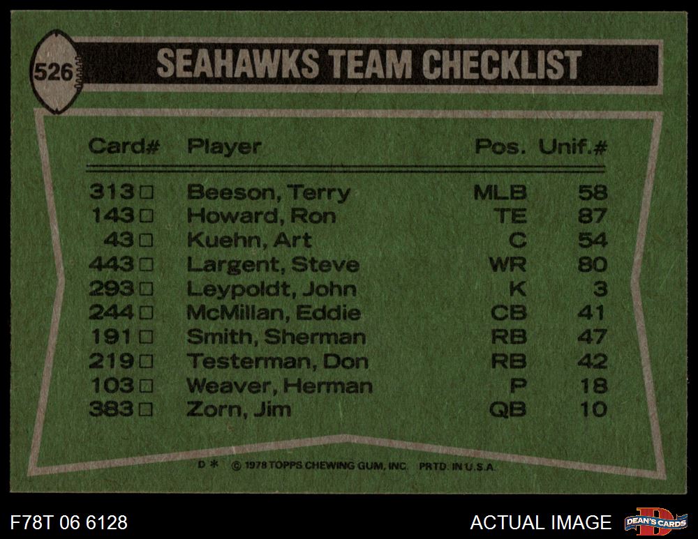 1978 Topps Football Cards (7,462 available)1978 Topps Seahawks (151 available)