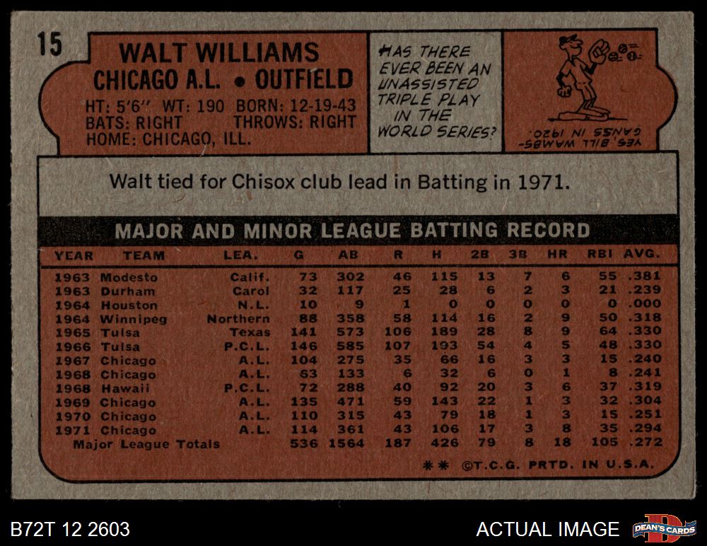 1972 Topps #15 Walt Williams 4.5 - VG/EX+