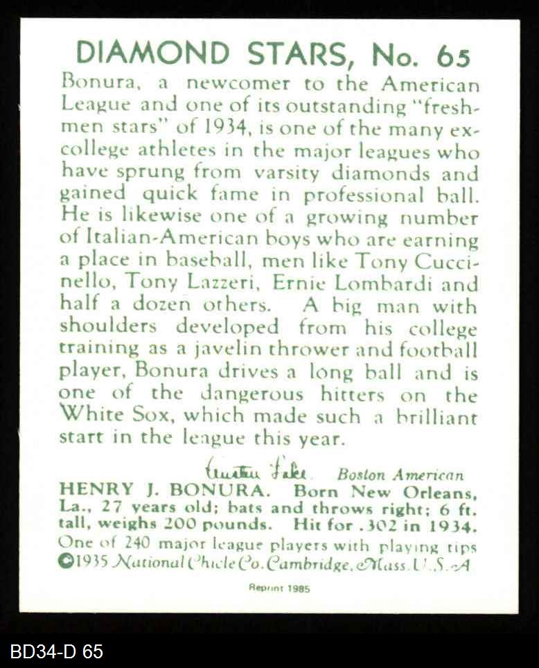 1934 Diamond Stars Reprint #65 Zeke Bonura