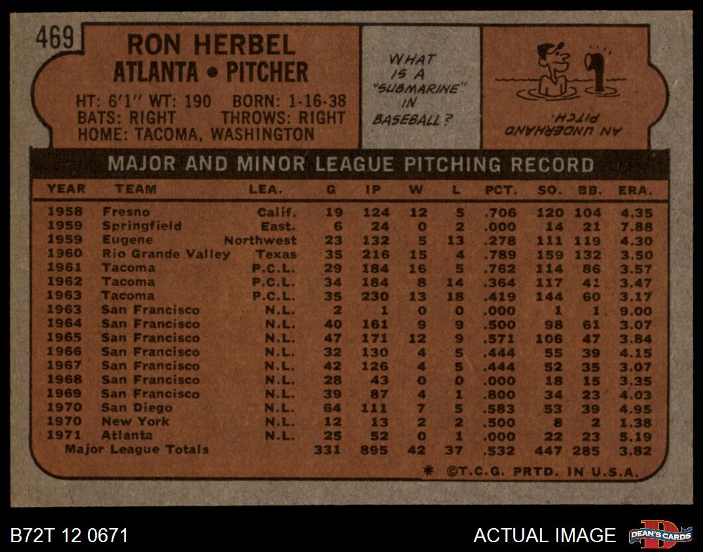 1972 Topps #469 Ron Herbel 6 - EX/MT