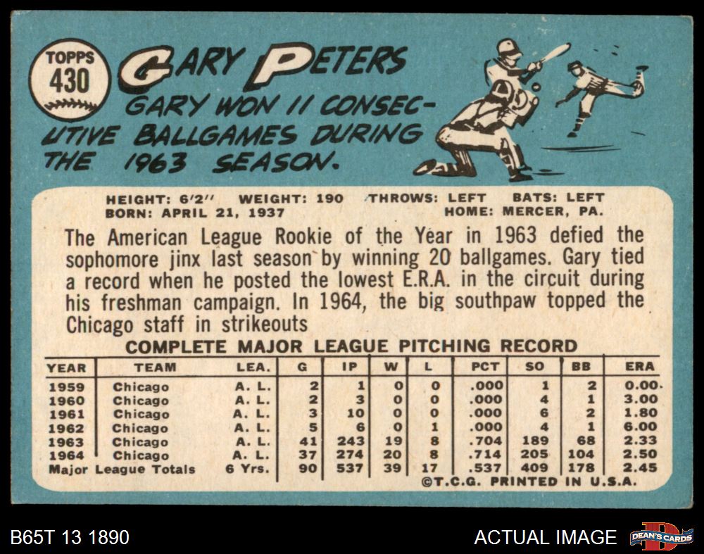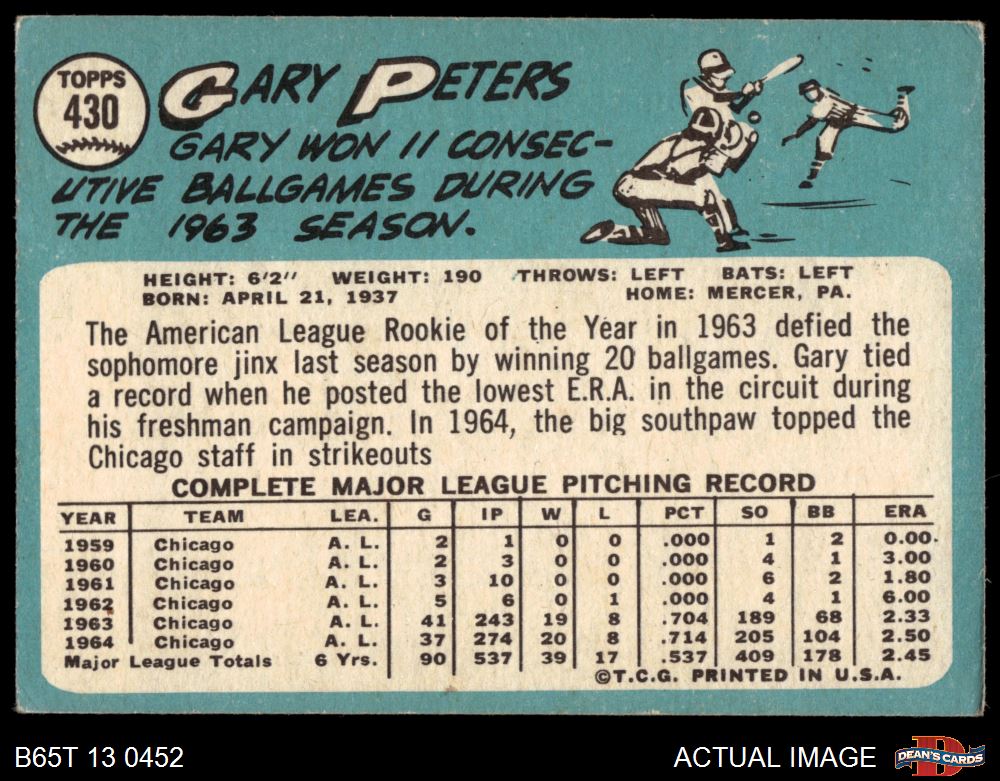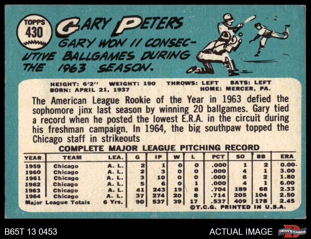 1965 Topps #430 Gary Peters 4 - VG/EX