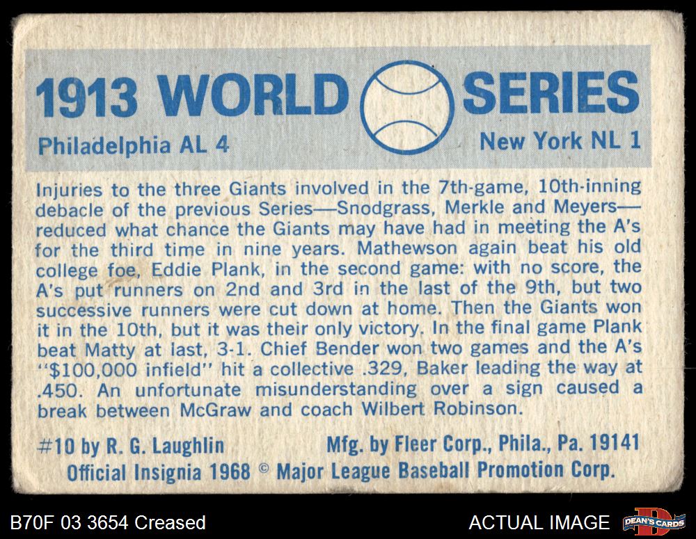 1970 Fleer World Series #10 1913 A's vs. Giants 2 - GOOD