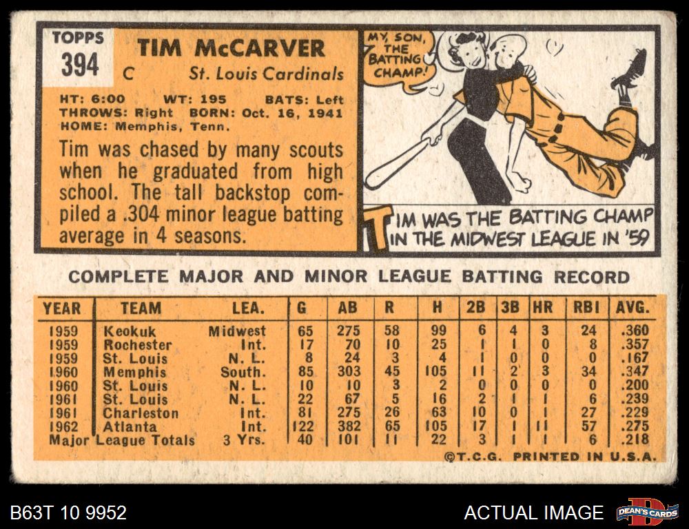 1963 Topps #394 Tim McCarver 1.5 - FAIR