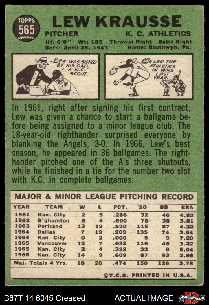 1967 Topps #565 Lew Krausse 2 - GOOD