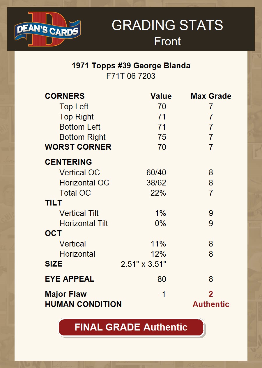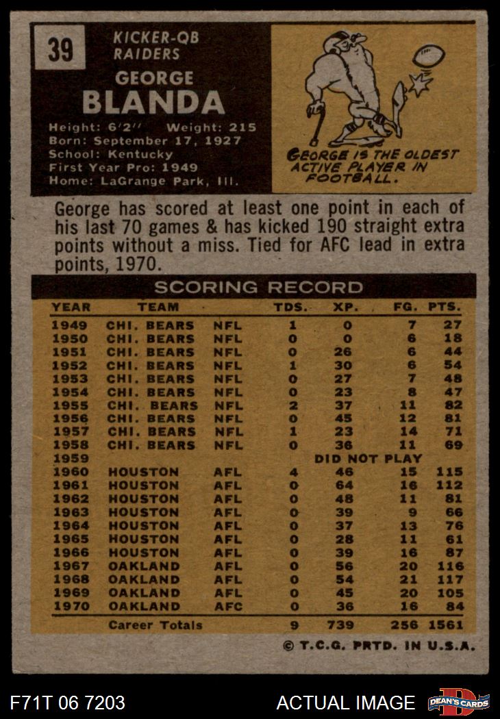 1971 Topps #39 George Blanda AUTHENTIC