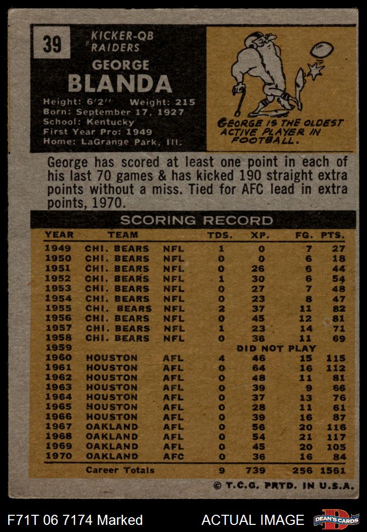 1971 Topps #39 George Blanda 1.5 - FAIR