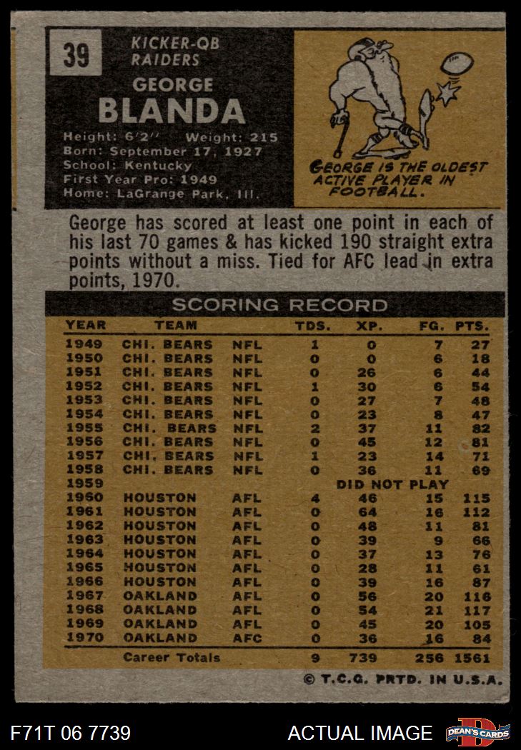1971 Topps #39 George Blanda