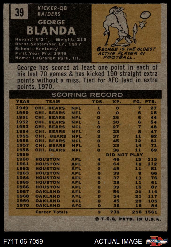 1971 Topps #39 George Blanda 2 - GOOD