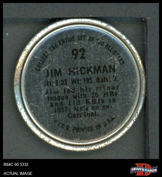 1964 Topps Coins #92 Jim Hickman 2 - GOOD