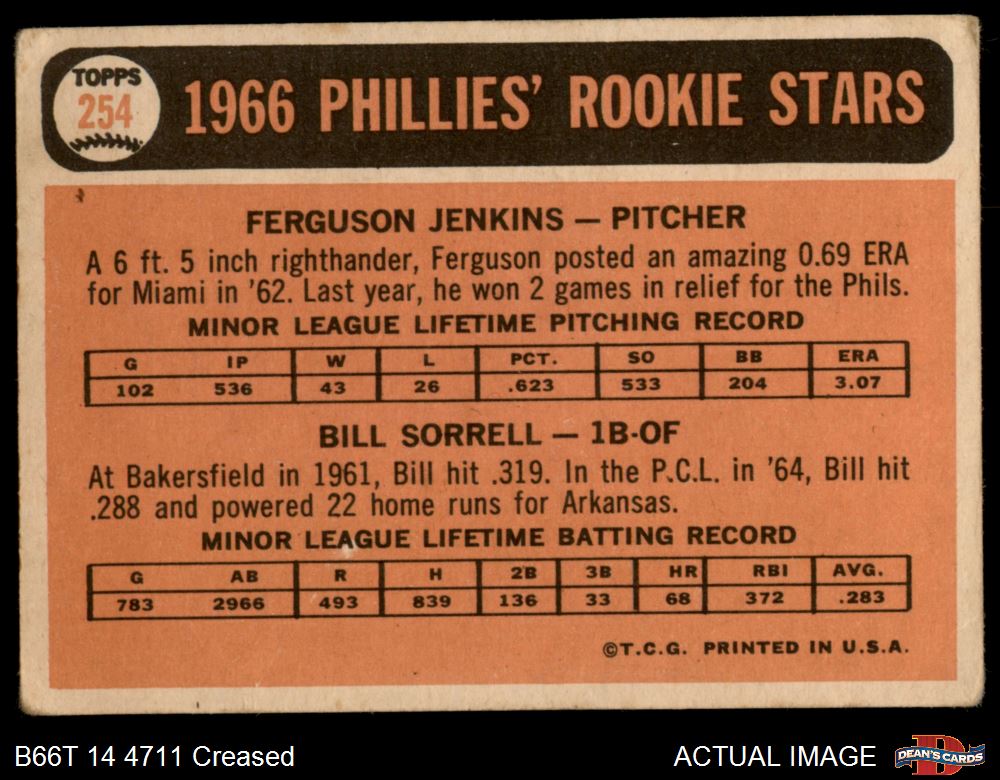 1966 Topps #254 - Ferguson Jenkins / Bill Sorrell Phillies Rookies 1 - POOR