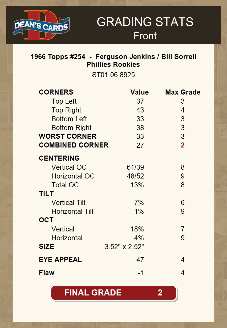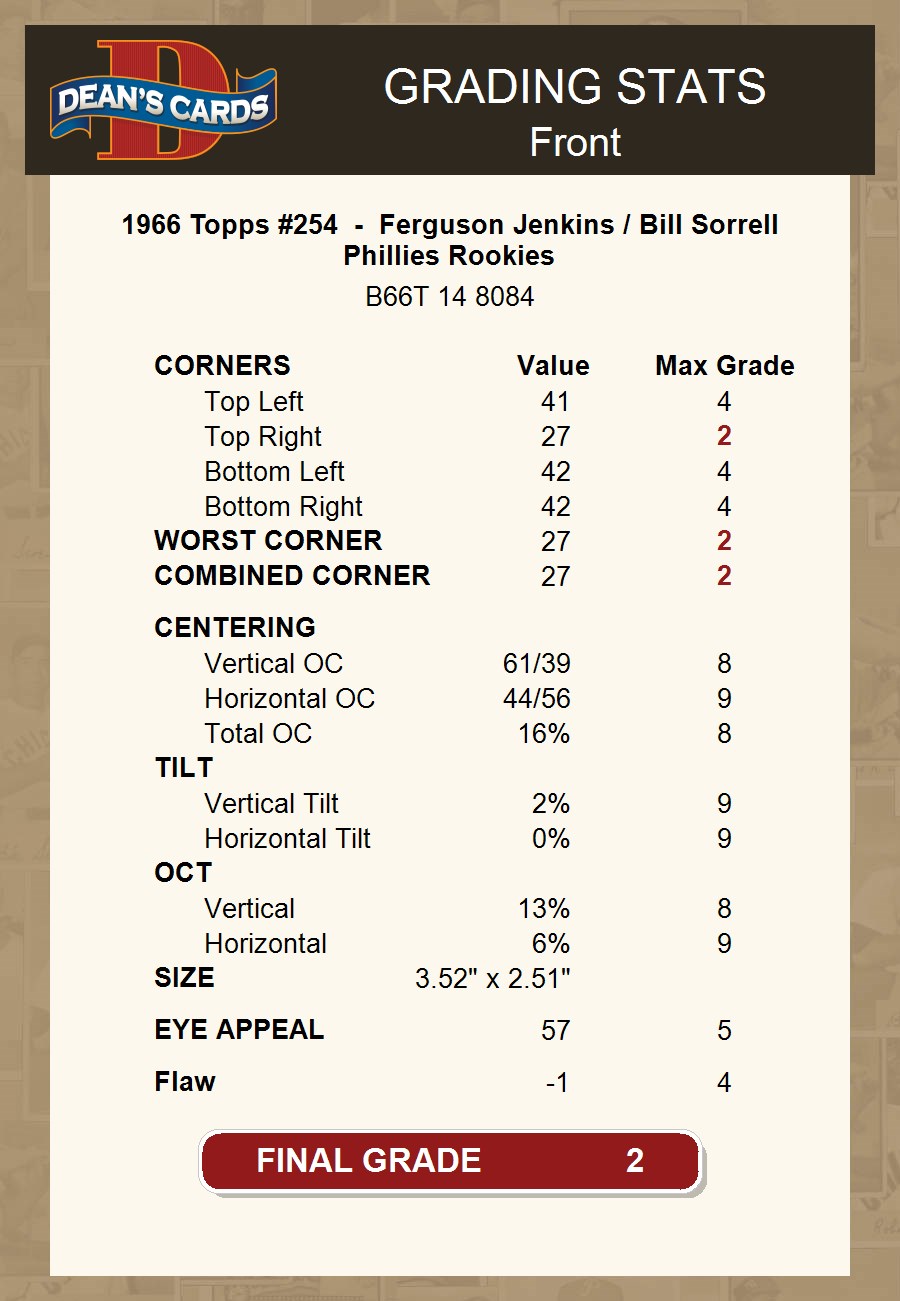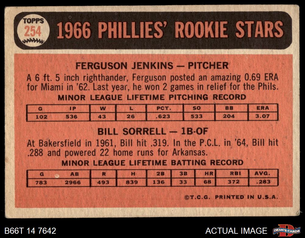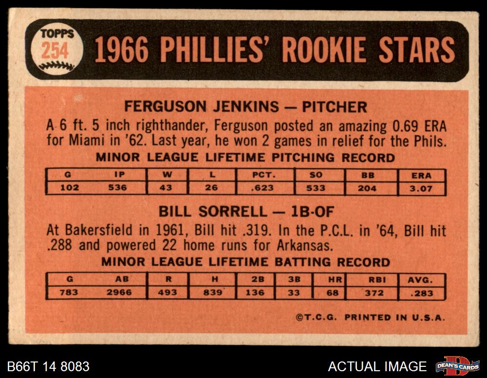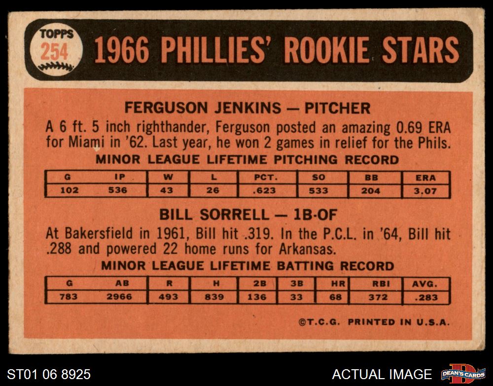 1966 Topps #254 - Ferguson Jenkins / Bill Sorrell Phillies Rookies 2 - GOOD