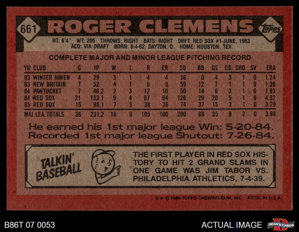 1986 Topps #661 Roger Clemens 8 - NM/MT