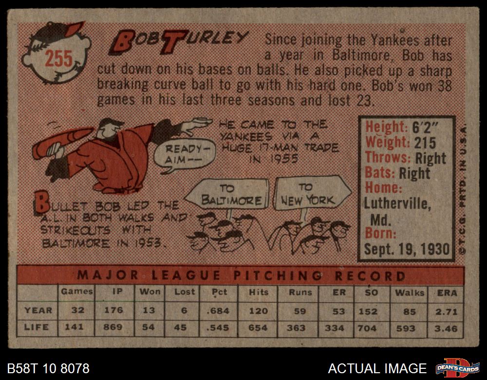 1958 Topps #255 Bob Turley 4 - VG/EX