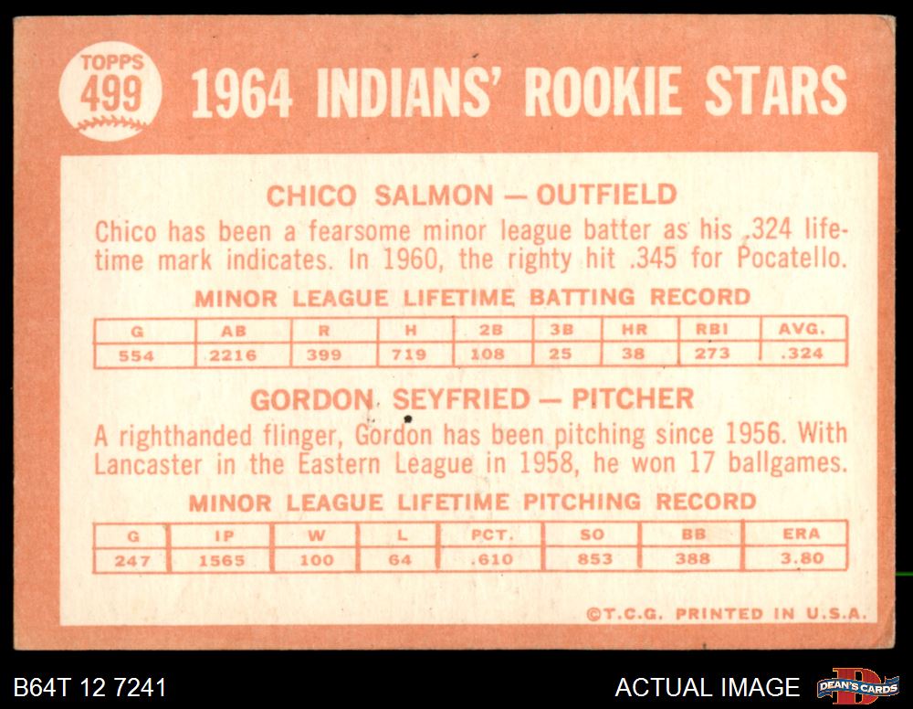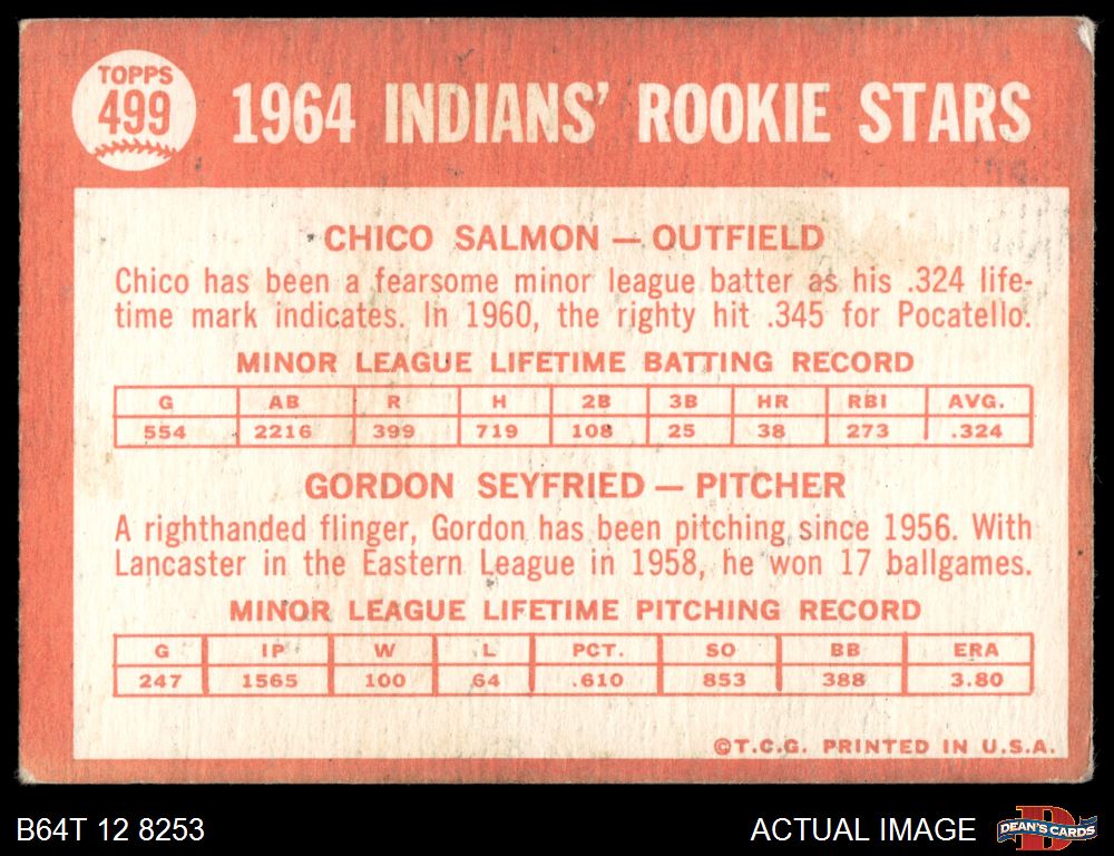 1964 Topps #499 - Chico Salmon / Gordon Seyfried Indians Rookies 3 - VG