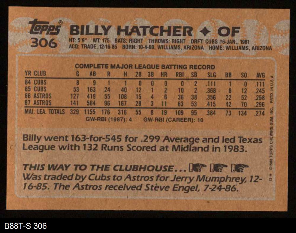 1988 Topps #306 Billy Hatcher 8 - NM/MT