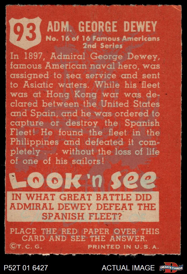 1952 Topps Look 'N See #93 Admiral George Dewey 4 - VG/EX