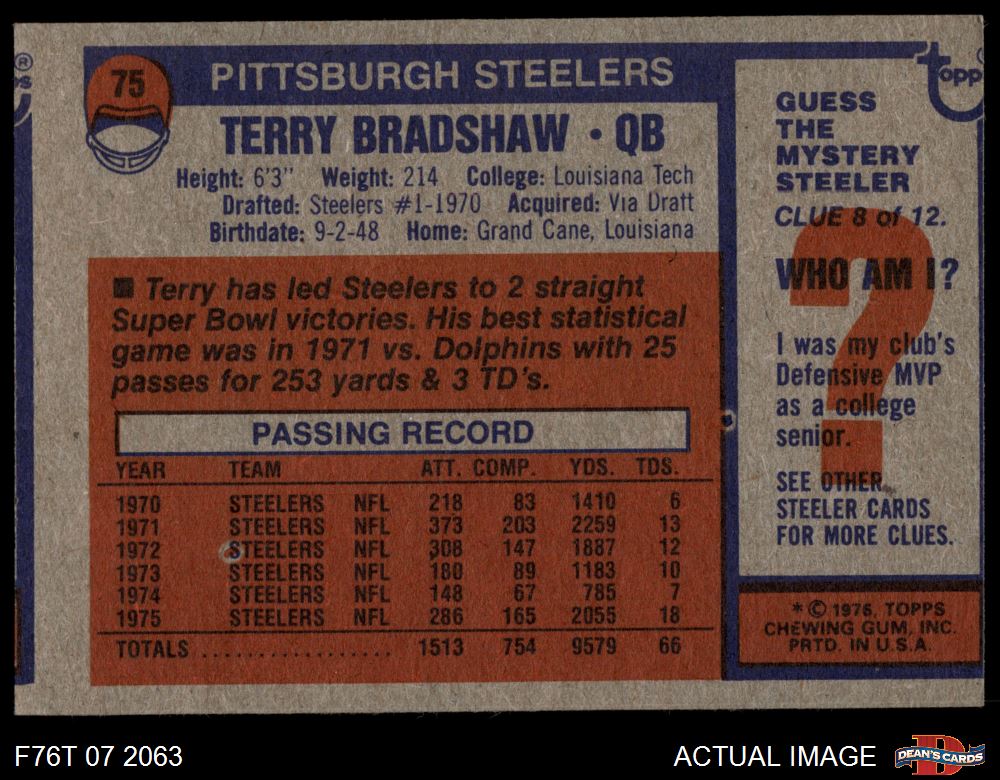 1976 Topps #75 Terry Bradshaw 2 - GOOD