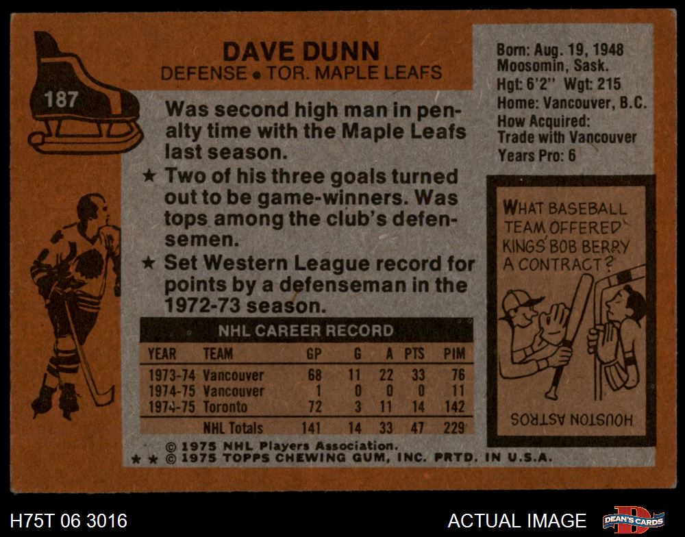 1975 Topps #187 Dave Dunn 2 - GOOD