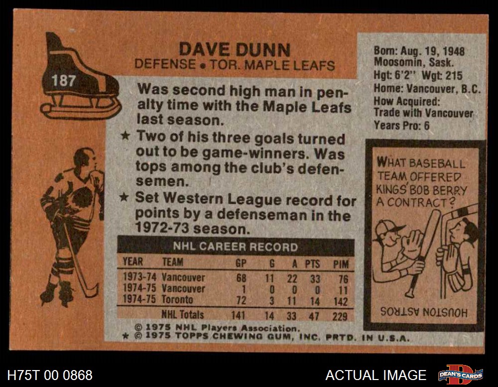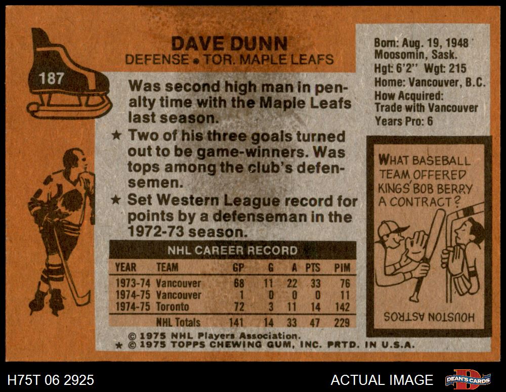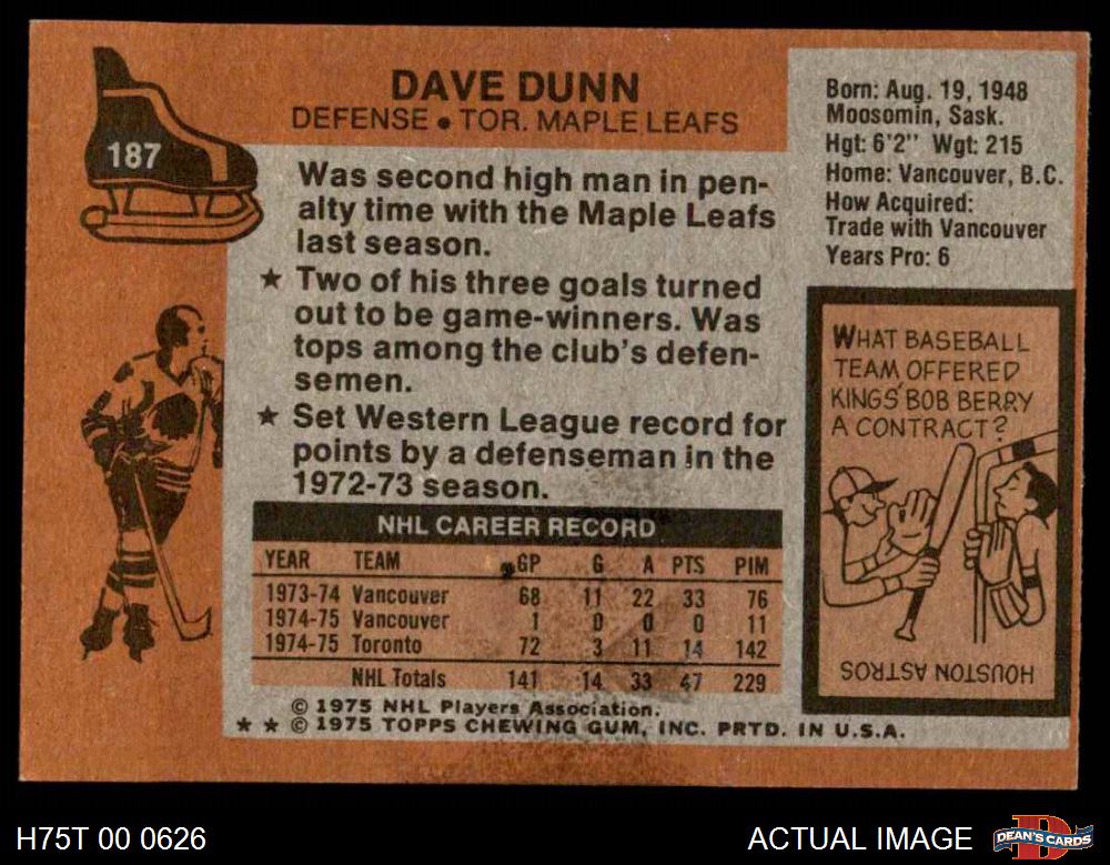 1975 Topps #187 Dave Dunn 5 - EX