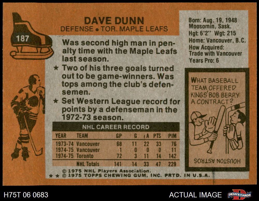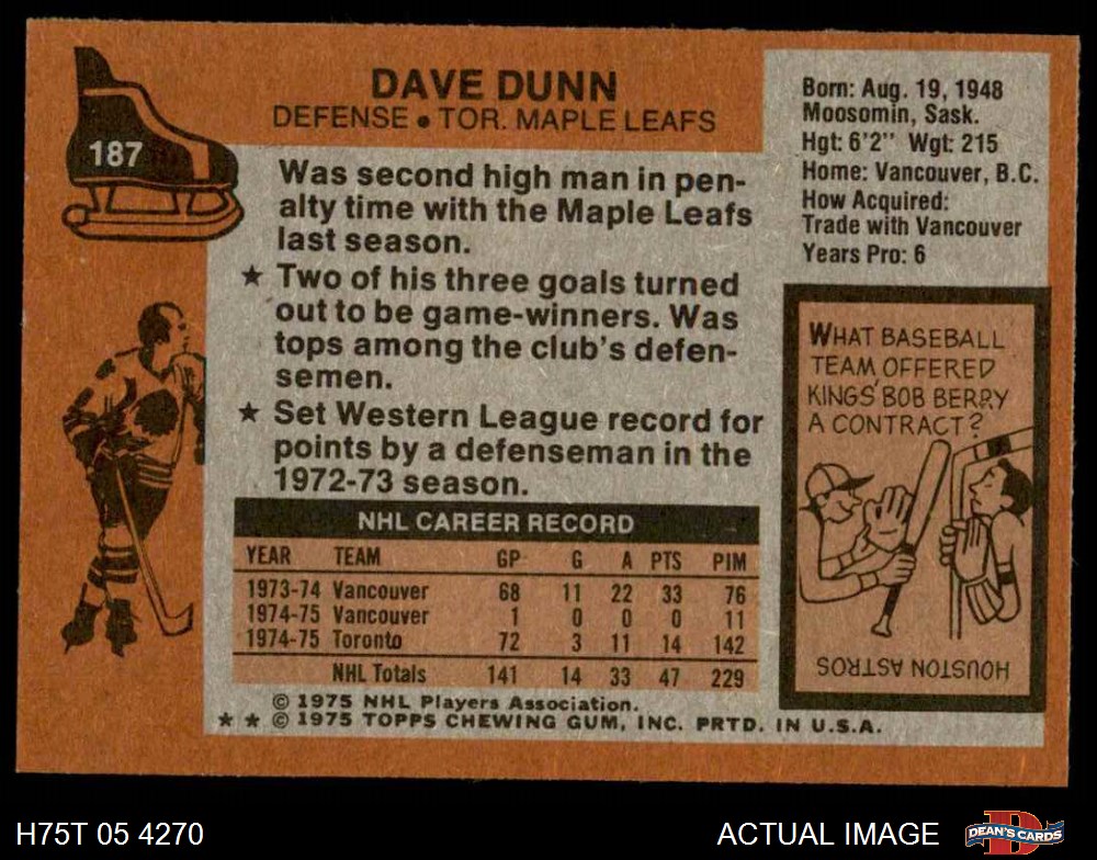 1975 Topps #187 Dave Dunn 8 - NM/MT