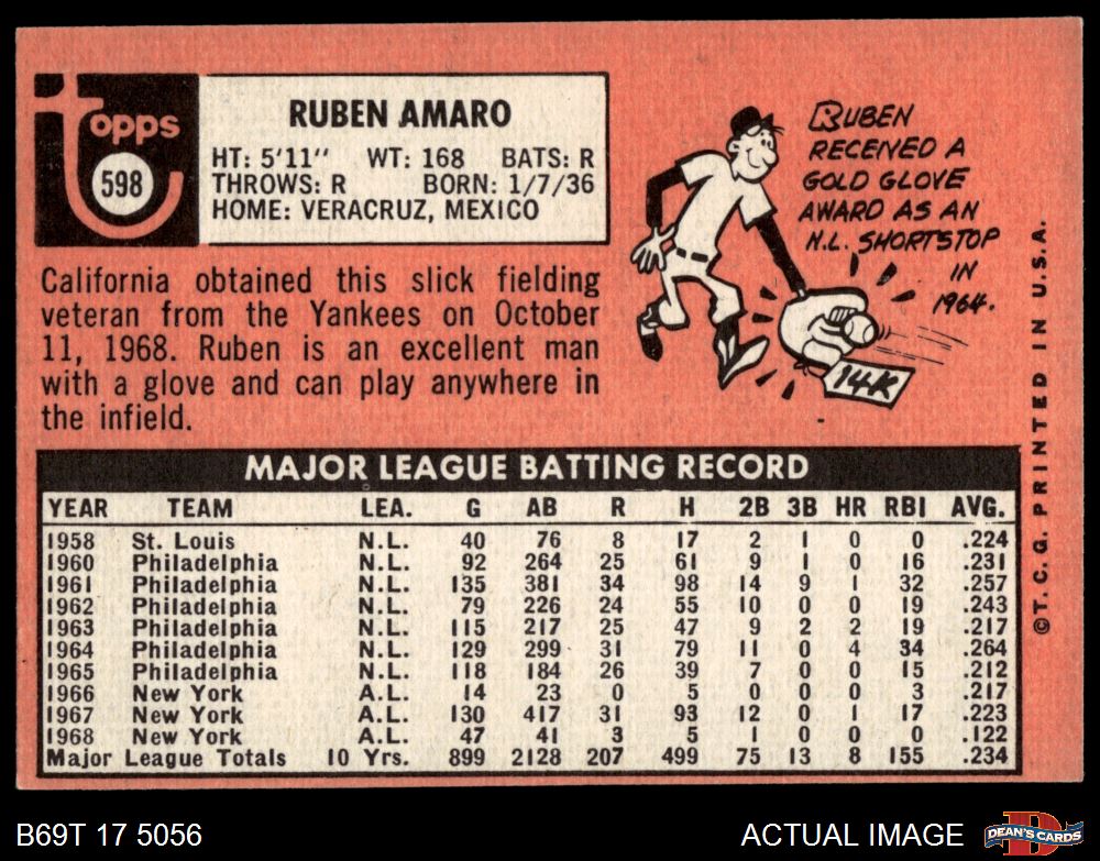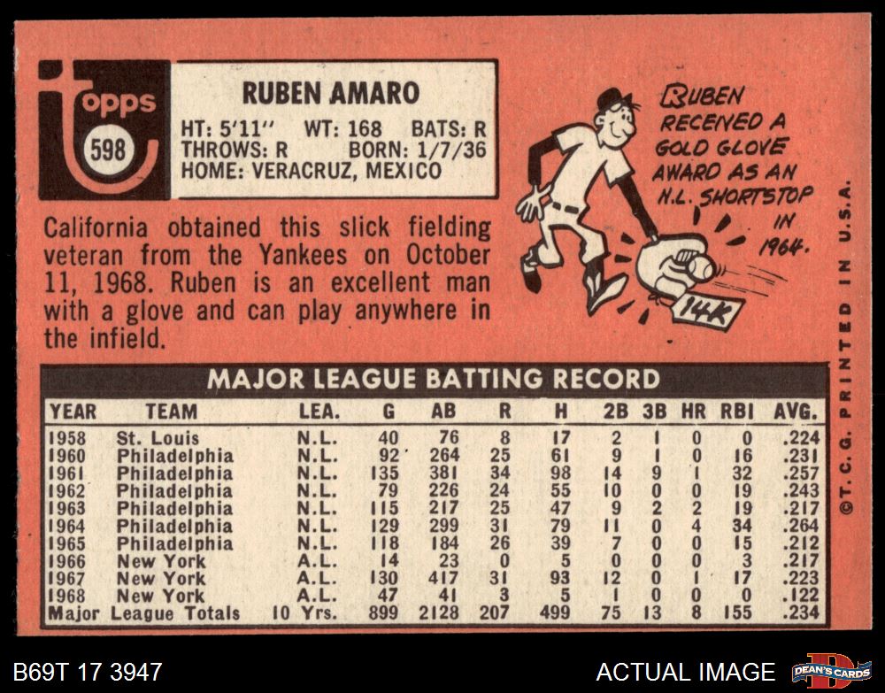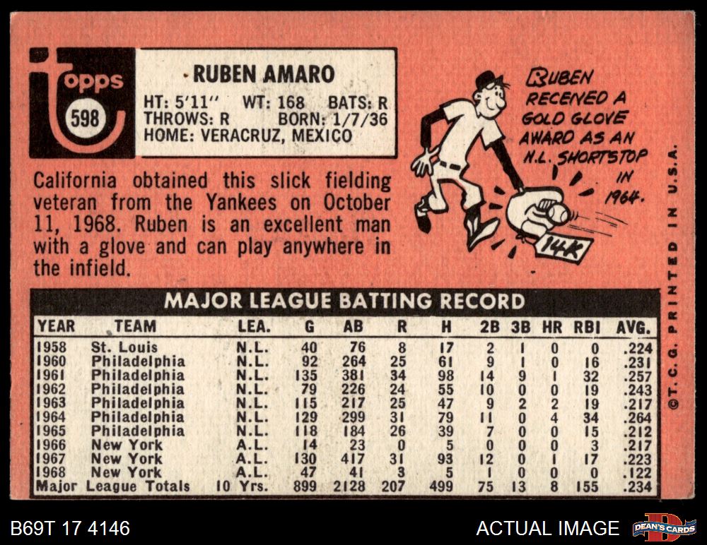 1969 Topps #598 Ruben Amaro 4 - VG/EX