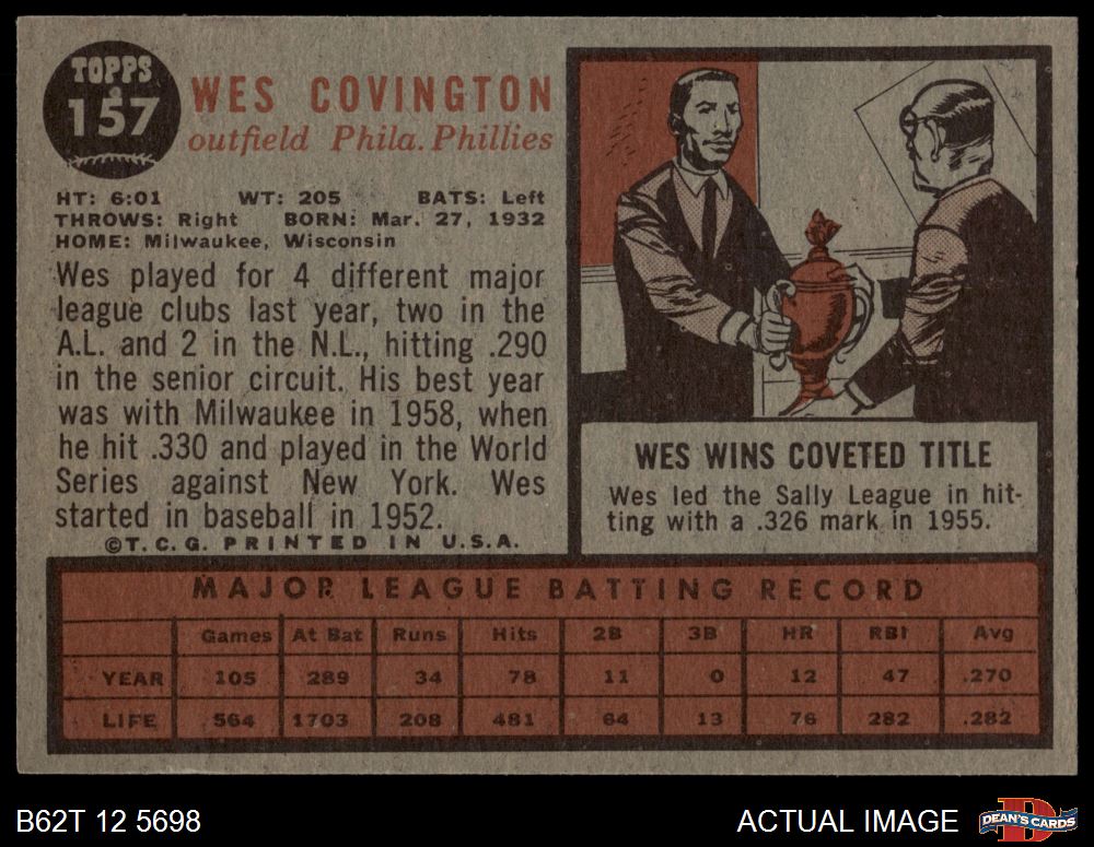 1962 Topps #157 NRM Wes Covington 1.5 - FAIR