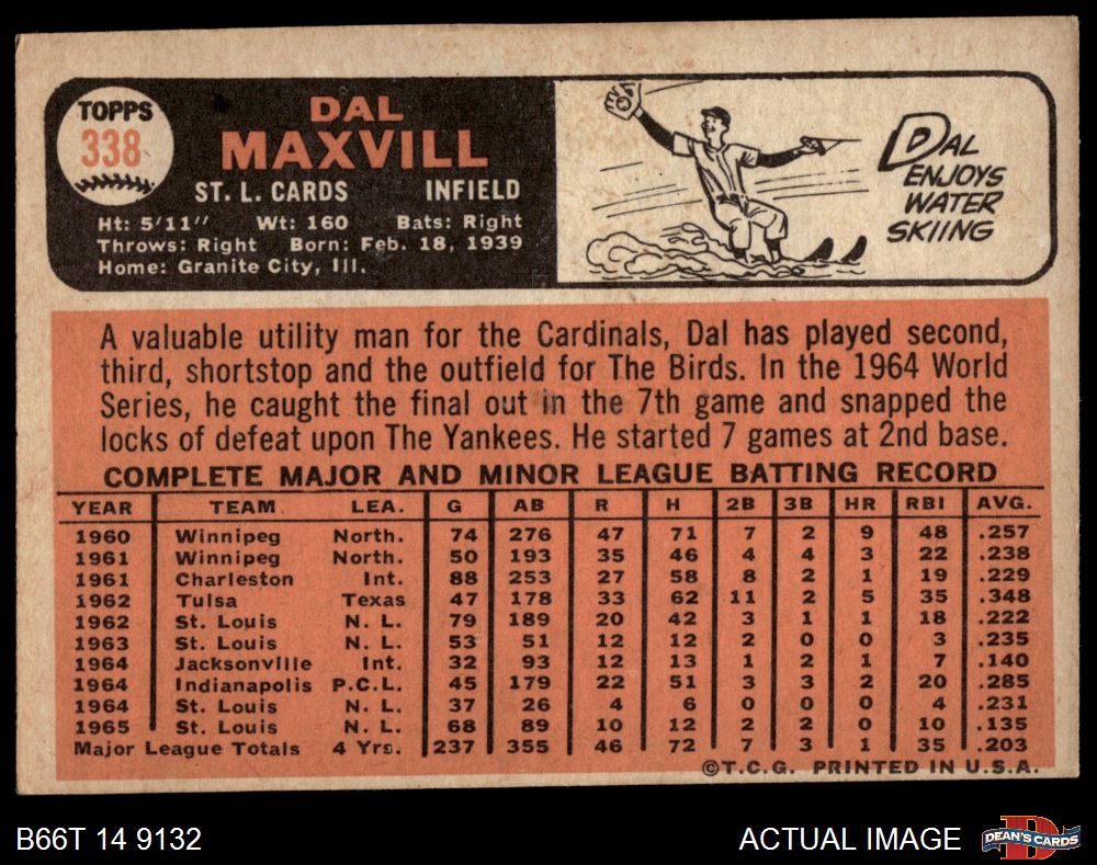 1966 Topps #338 Dal Maxvill 3 - VG
