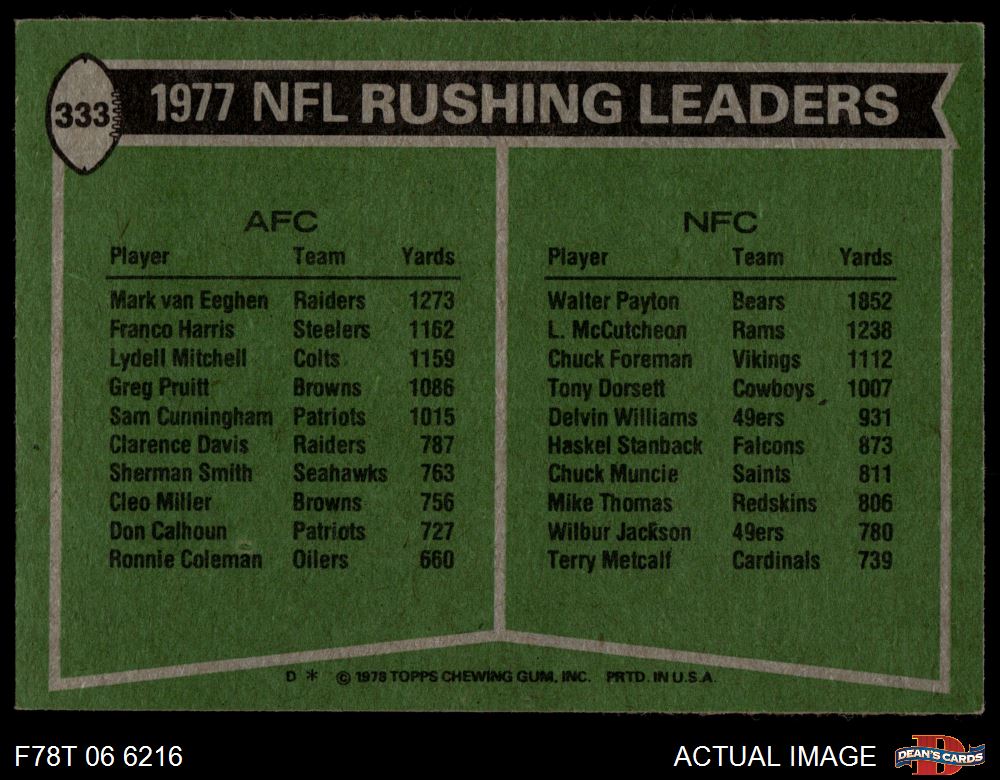 1978 Topps #333 - Walter Payton / Mark van Eeghen Rushing Leaders 4.5 - VG/EX+