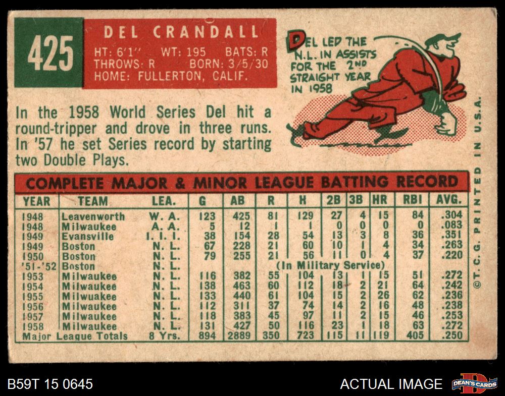 1959 Topps #425 Del Crandall 3 - VG