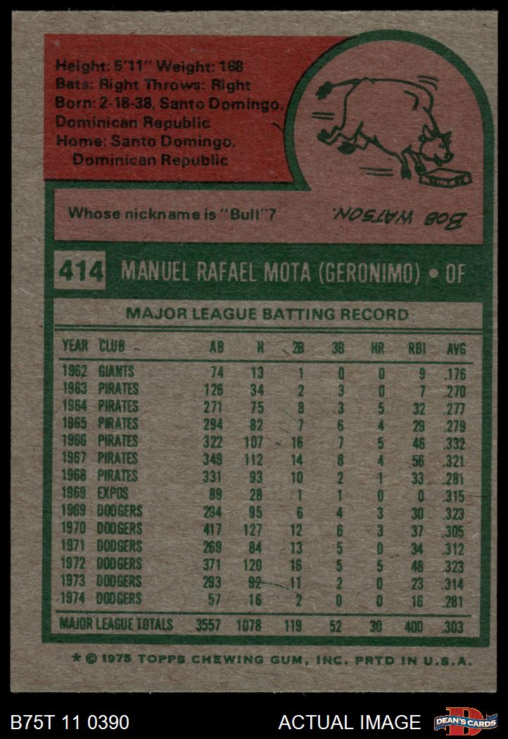 1975 Topps #414 Manny Mota 5 - EX