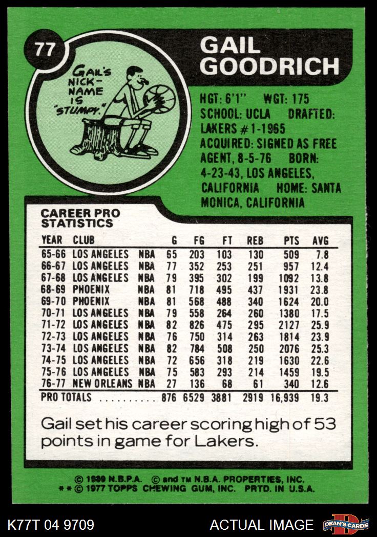 1977 Topps #77 Gail Goodrich 5 - EX