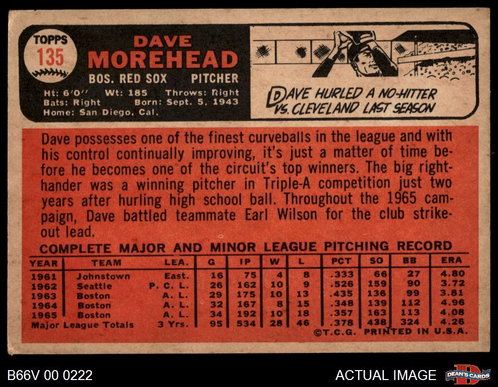 1966 Topps Venezuelan #135 Dave Morehead 4 - VG/EX