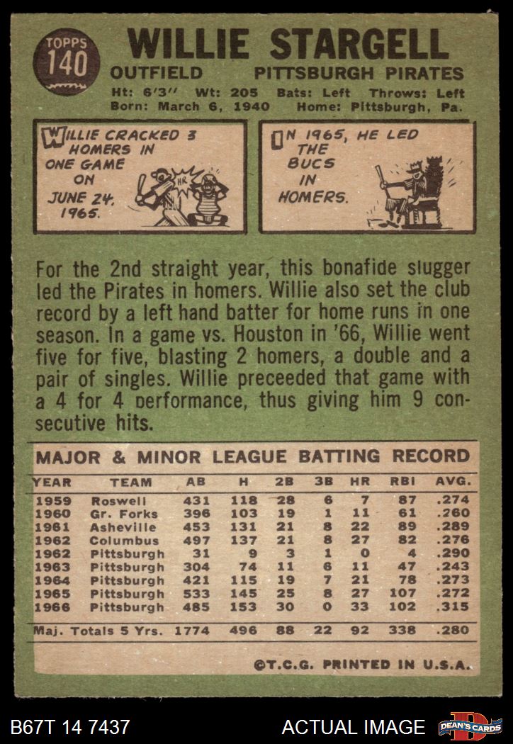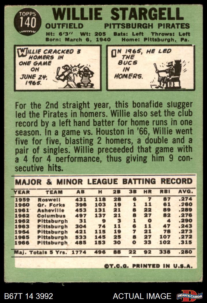1967 Topps #140 Willie Stargell 4 - VG/EX