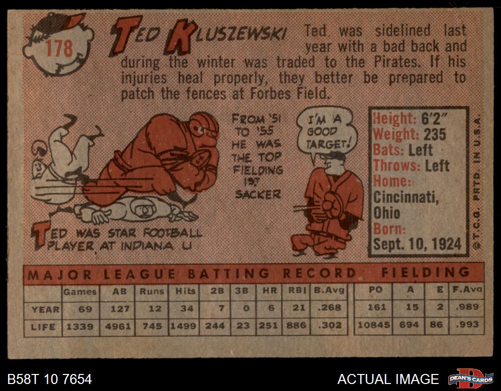 1958 Topps #178 Ted Kluszewski 3 - VG