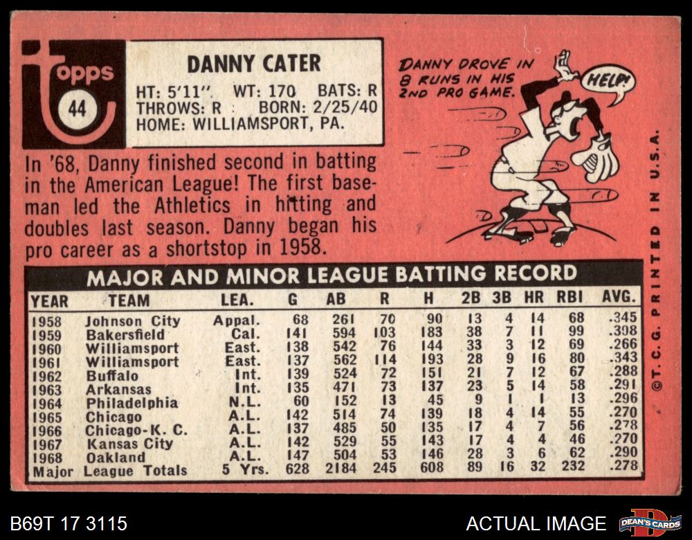 1969 Topps #44 Danny Cater