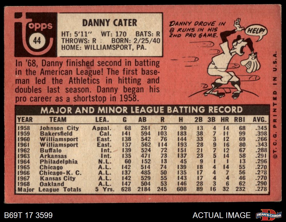 1969 Topps #44 Danny Cater 2 - GOOD