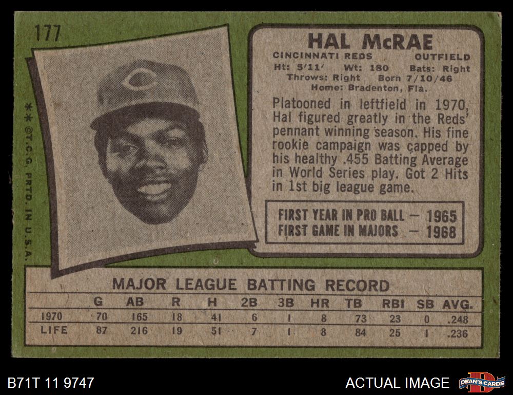 1971 Topps #177 Hal McRae 4 - VG/EX