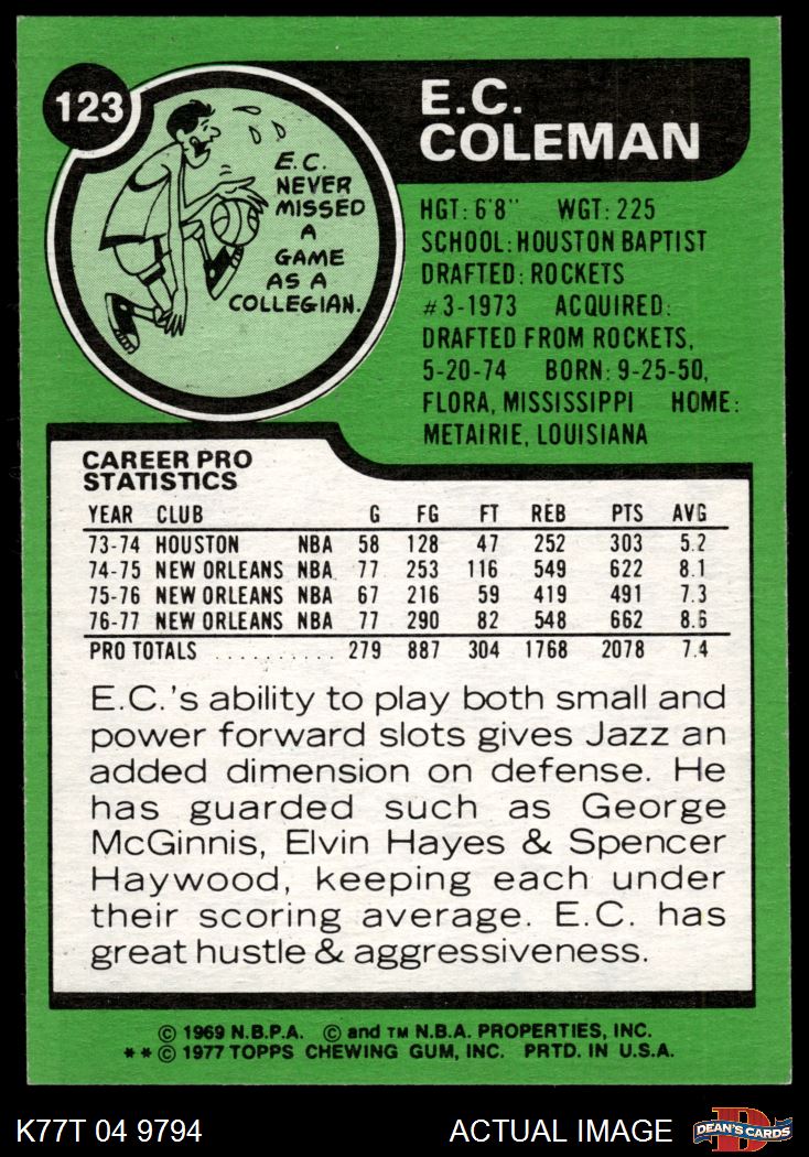 1977 Topps #123 EC Coleman 4 - VG/EX