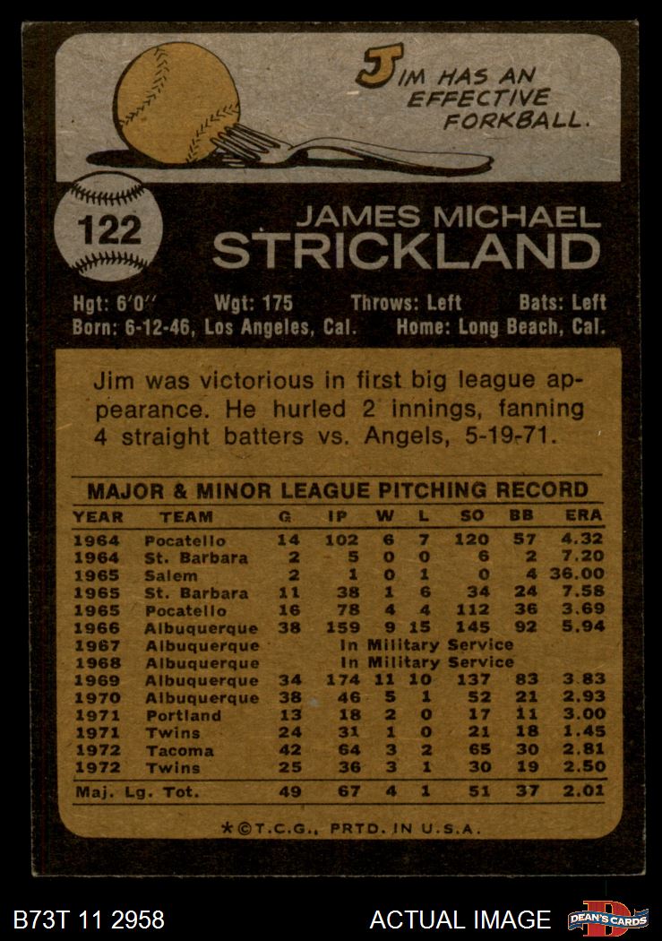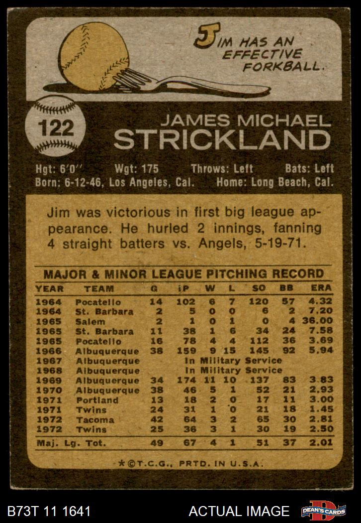 1973 Topps #122 Jim Strickland 4 - VG/EX