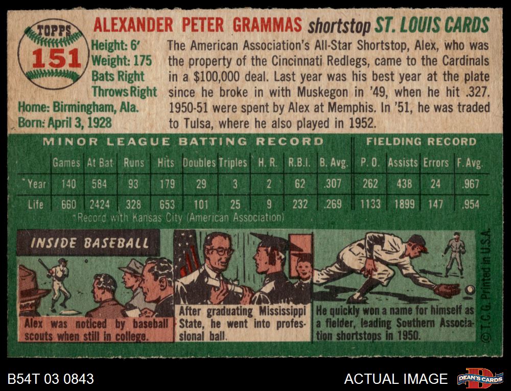 1954 Topps #151 Alex Grammas 5 - EX