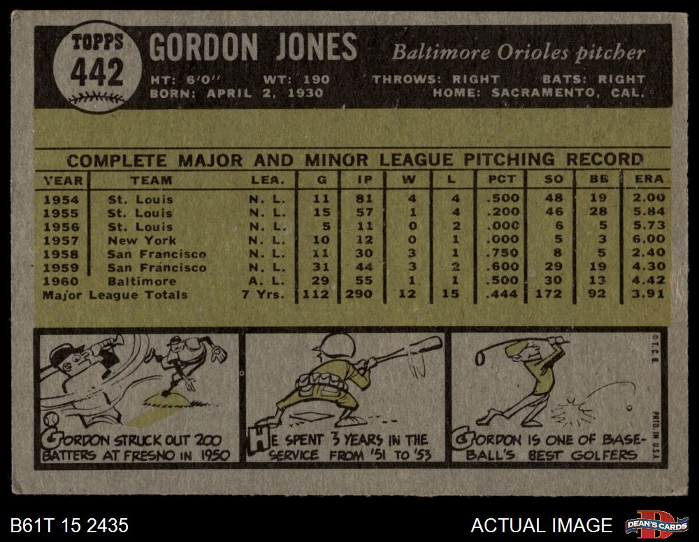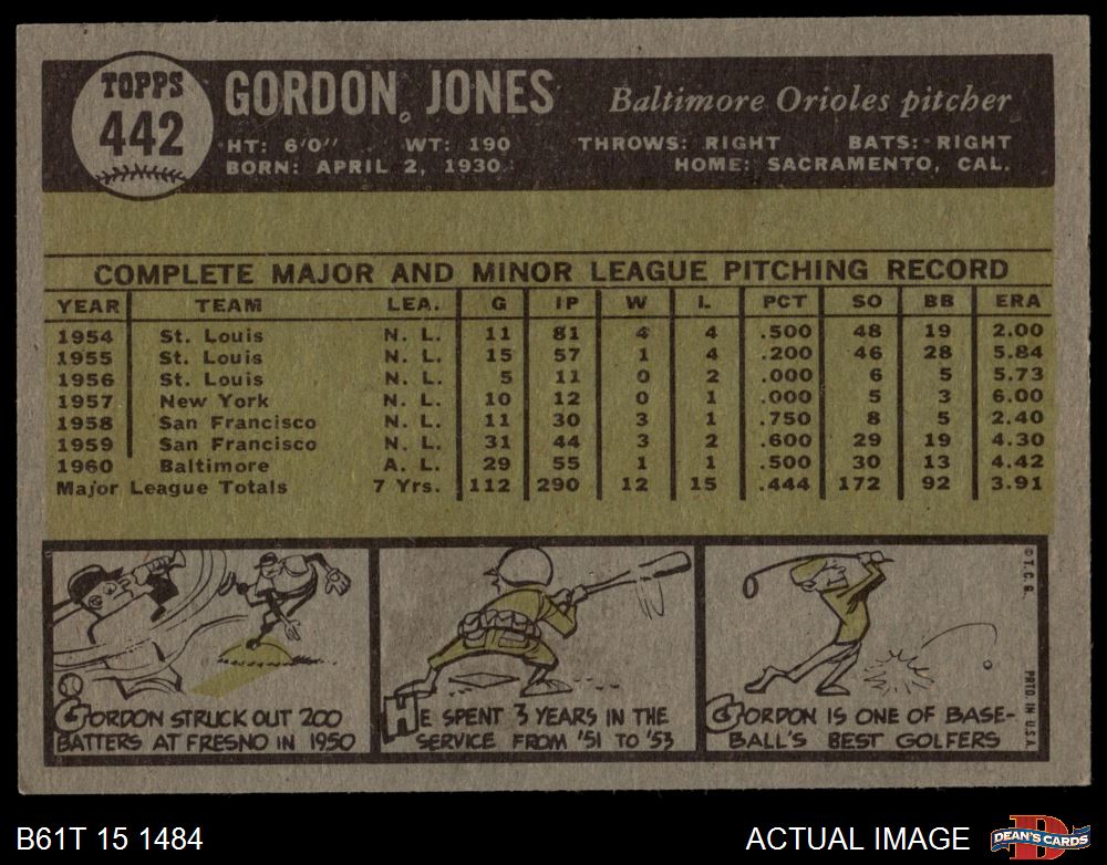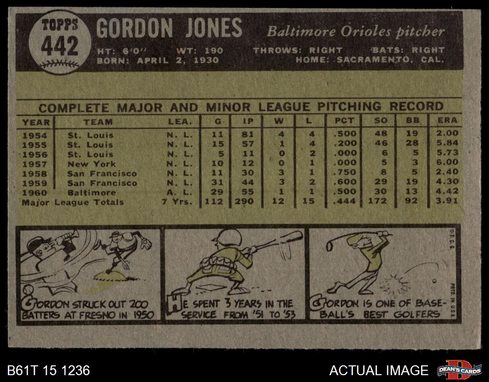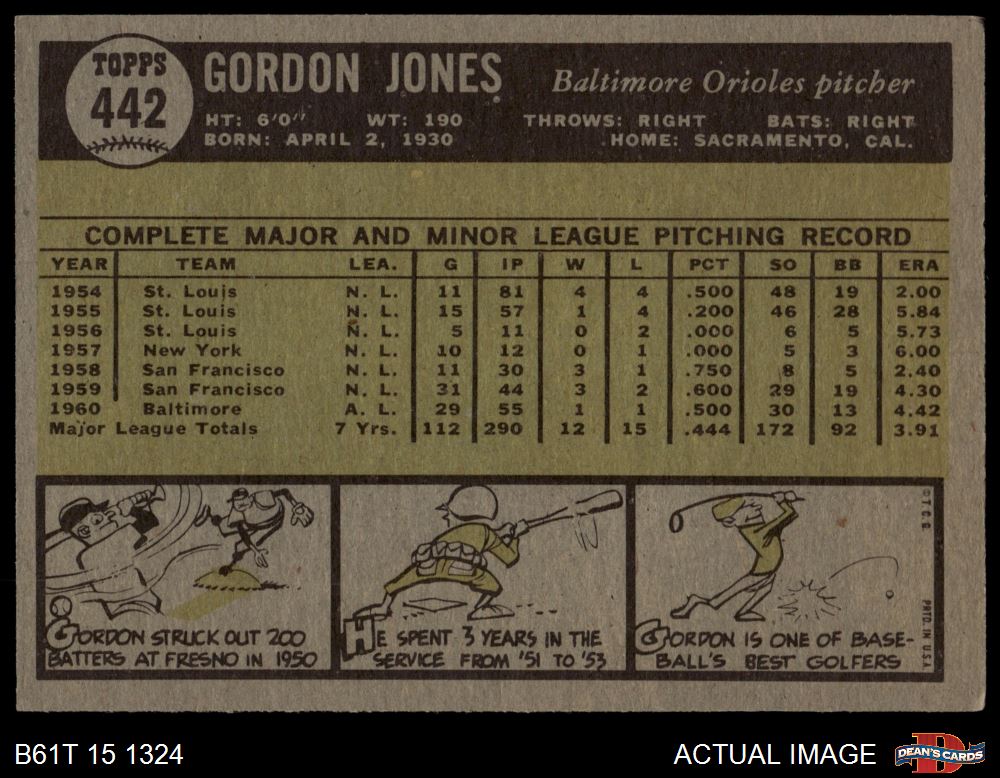 1961 Topps #442 Gordon Jones