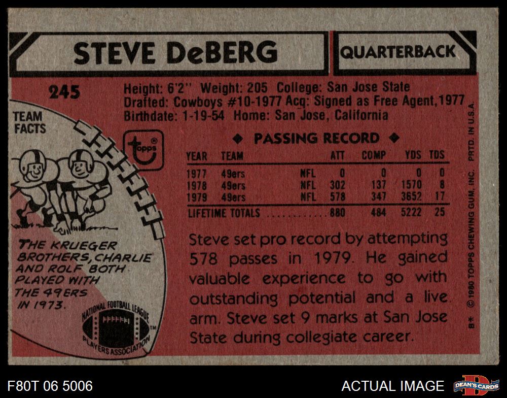 1980 Topps #245 Steve DeBerg
