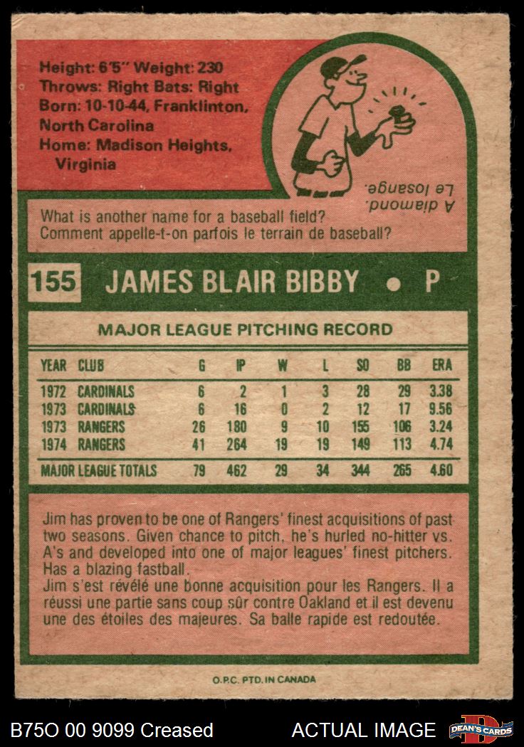 1975 O-Pee-Chee #155 Jim Bibby 3 - VG