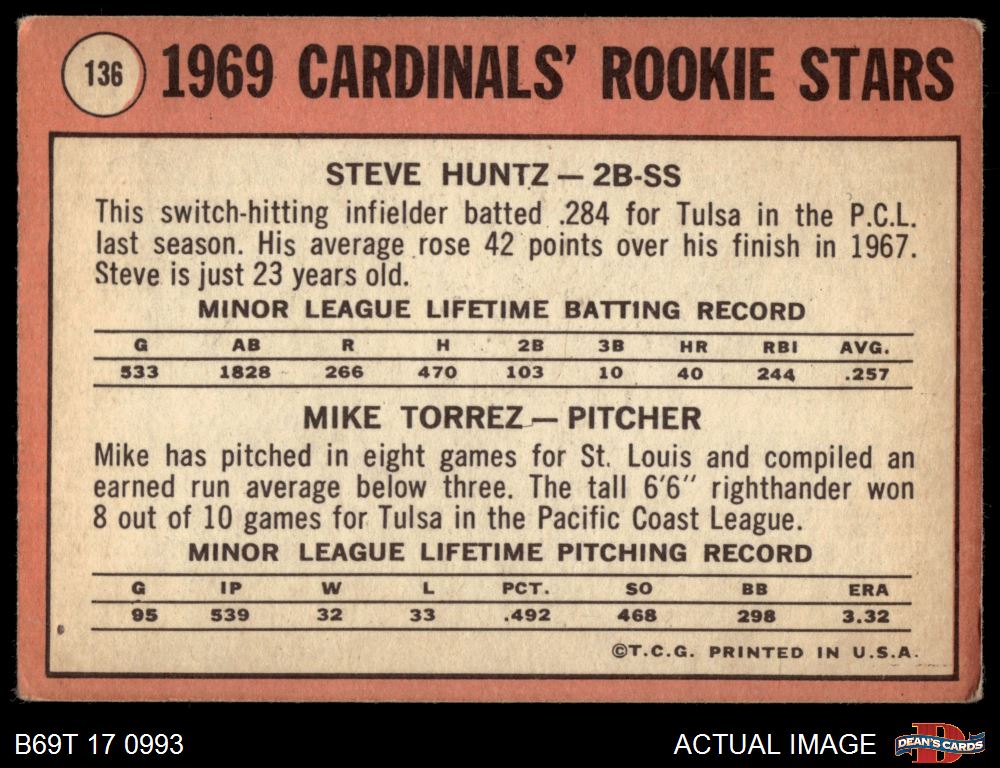 1969 Topps #136 - Mike Torrez / Steve Huntz Cardinals Rookies 1.5 - FAIR