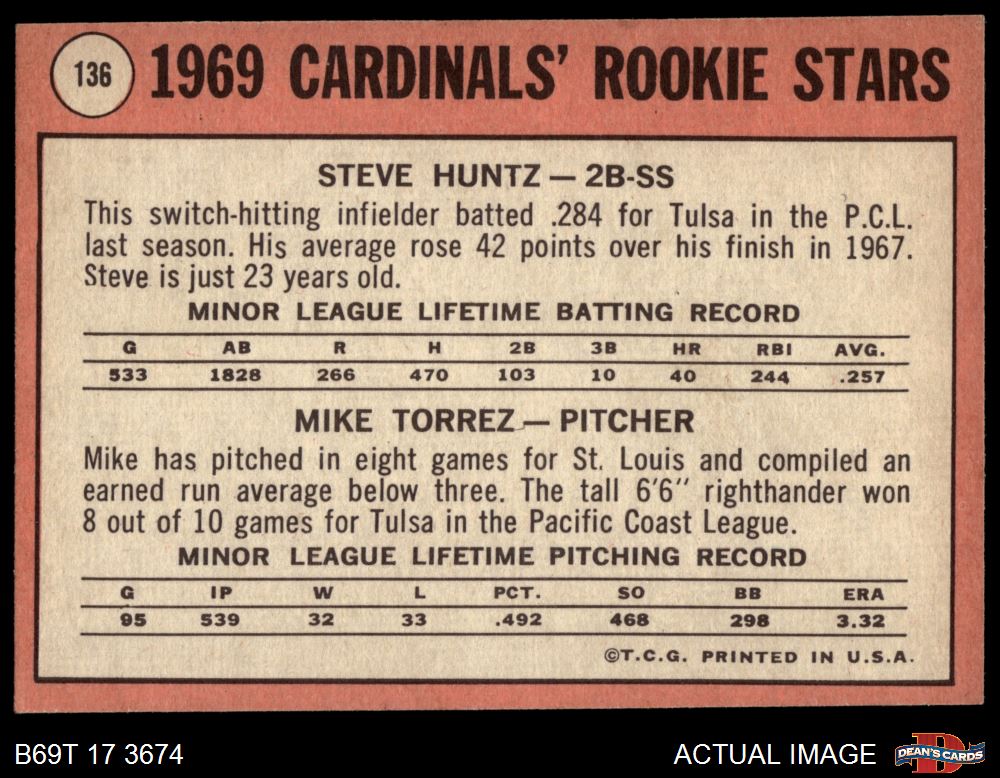 1969 Topps #136 - Mike Torrez / Steve Huntz Cardinals Rookies 6 - EX/MT