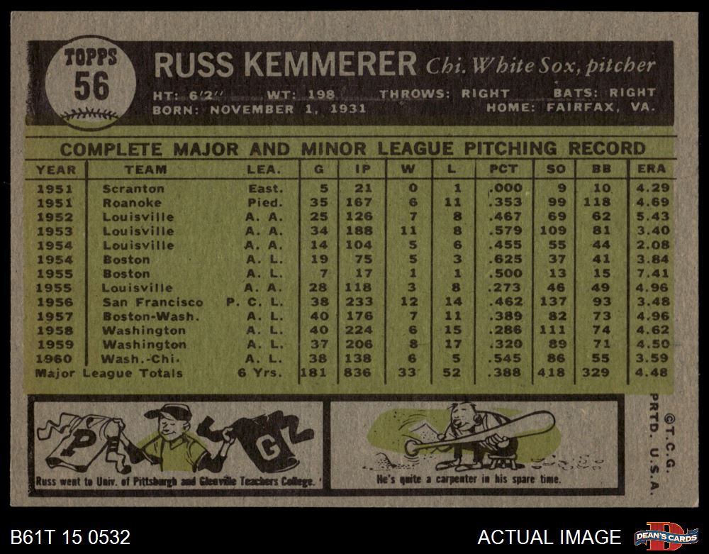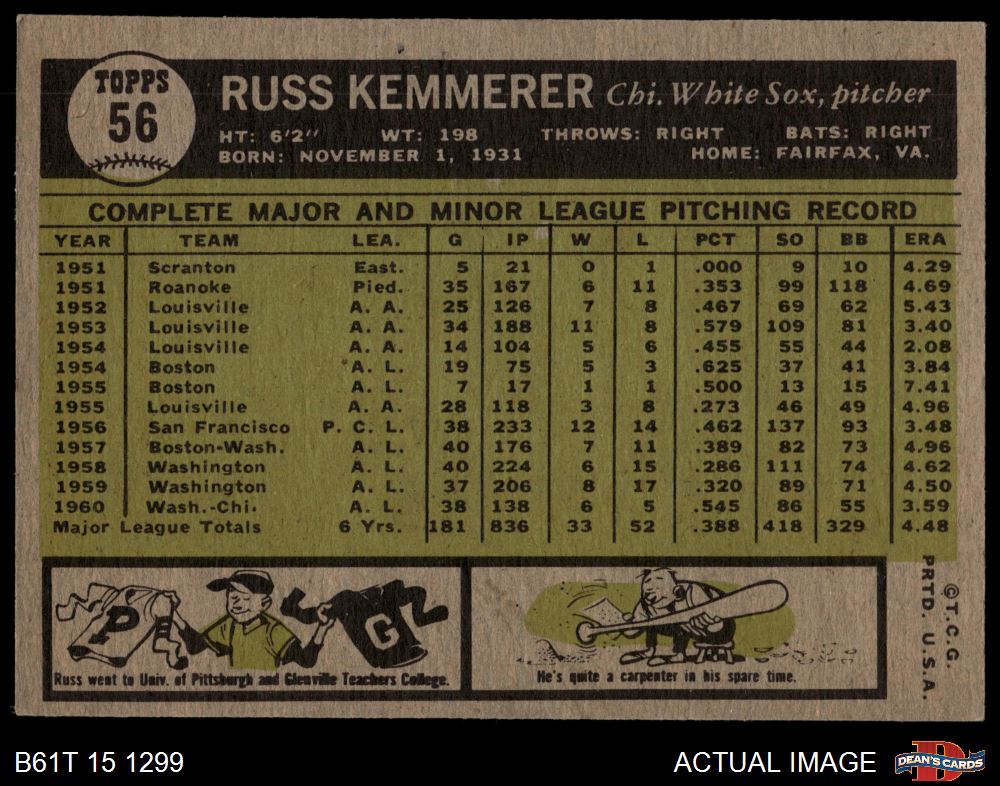 1961 Topps #56 Russ Kemmerer 4 - VG/EX