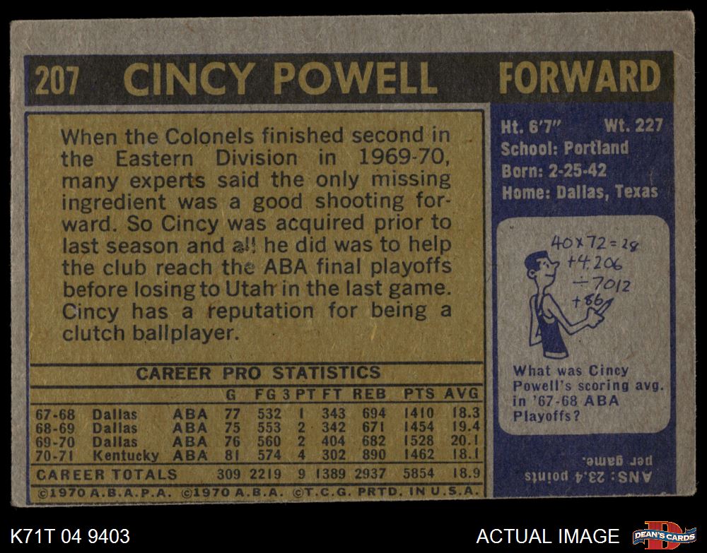 1971 Topps #207 Cincy Powell