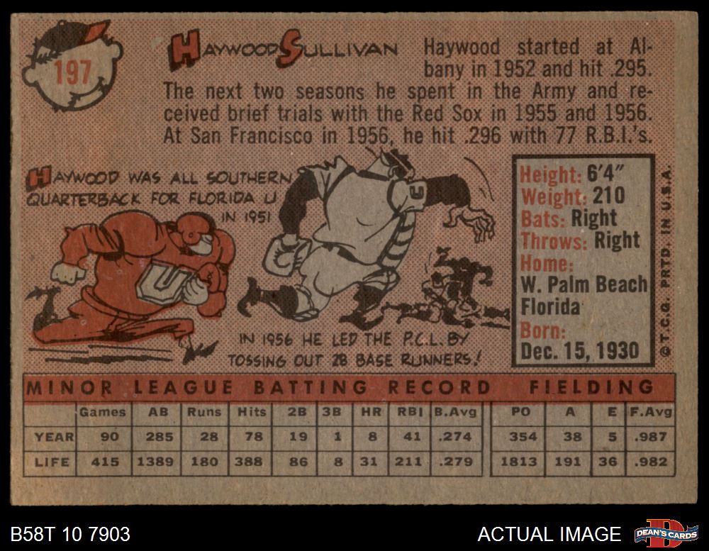 1958 Topps #197 Haywood Sullivan 2 - GOOD