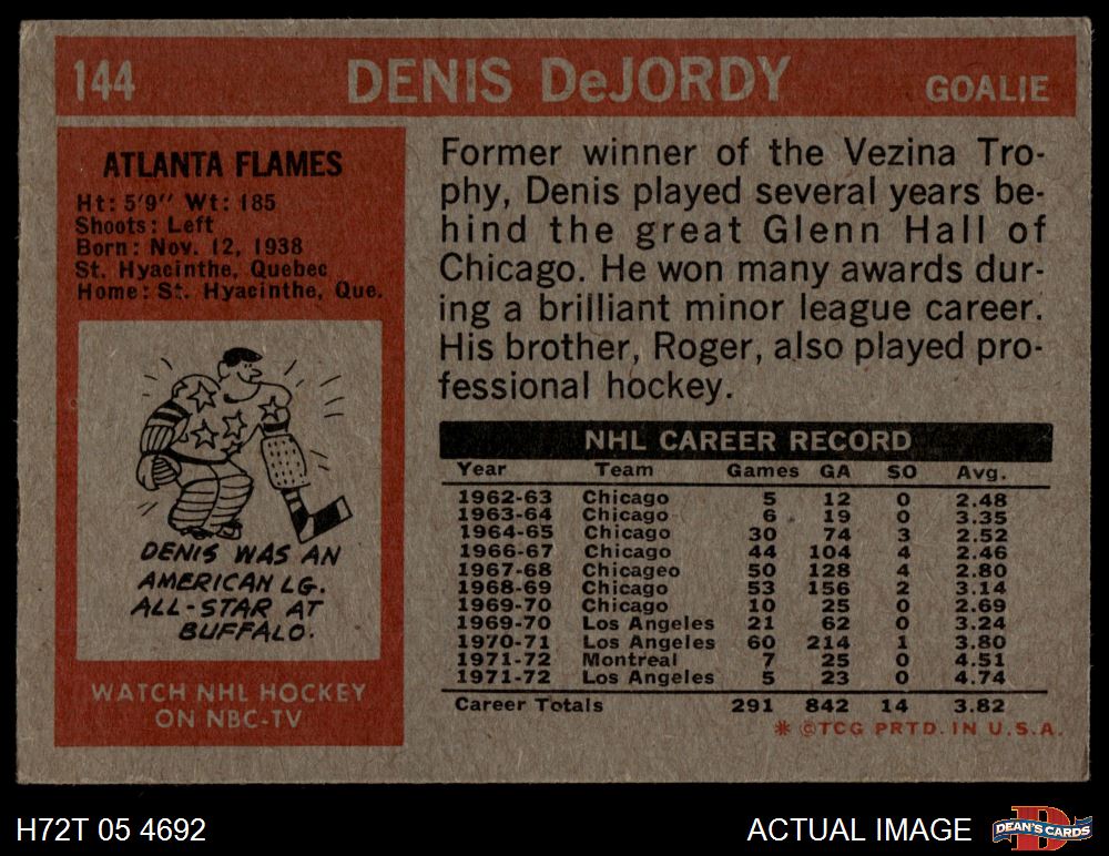 1972 Topps #144 Denis DeJordy 4 - VG/EX